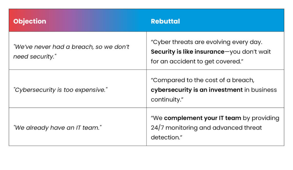 Many SMBs hesitate to invest in cybersecurity due to cost concerns or misconceptions about their risk level. Here’s how to counter common objections: